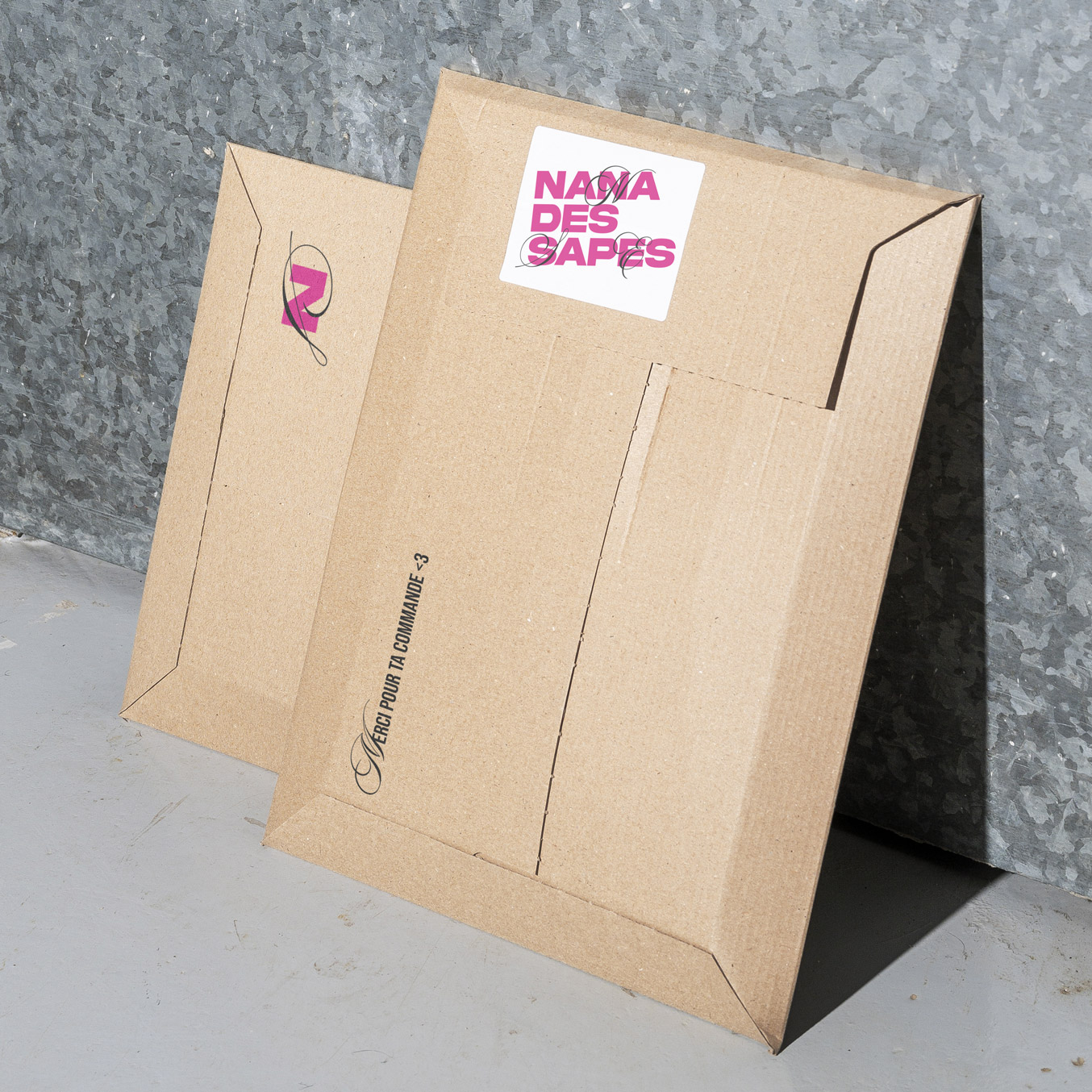 L’identité visuelle devait refléter cette ambivalence, entre confort et extravagance. Le logo observe une composition droite, structurée, hiérarchisée, comme dans le processus créatif d’une pièce de mode. Nous avons choisi une première typographie épaisse et sans sérif, imposante afin d’asseoir le style de la marque ; à laquelle nous avons superposé une police manuscrite. Cette superposition symbolise la cohabitation entre le street et le glamour.