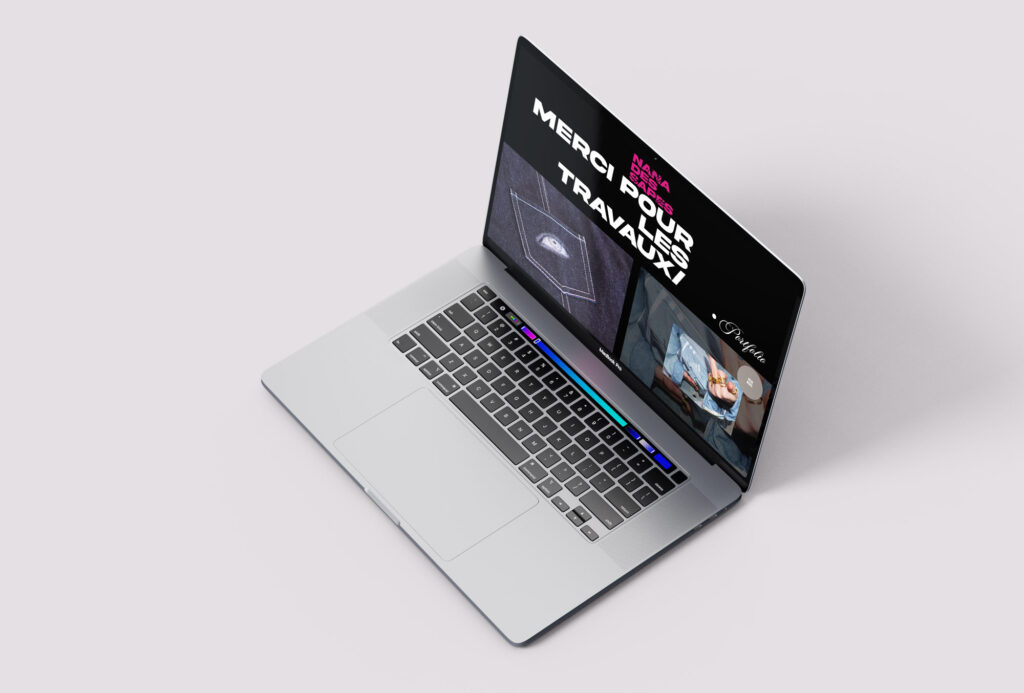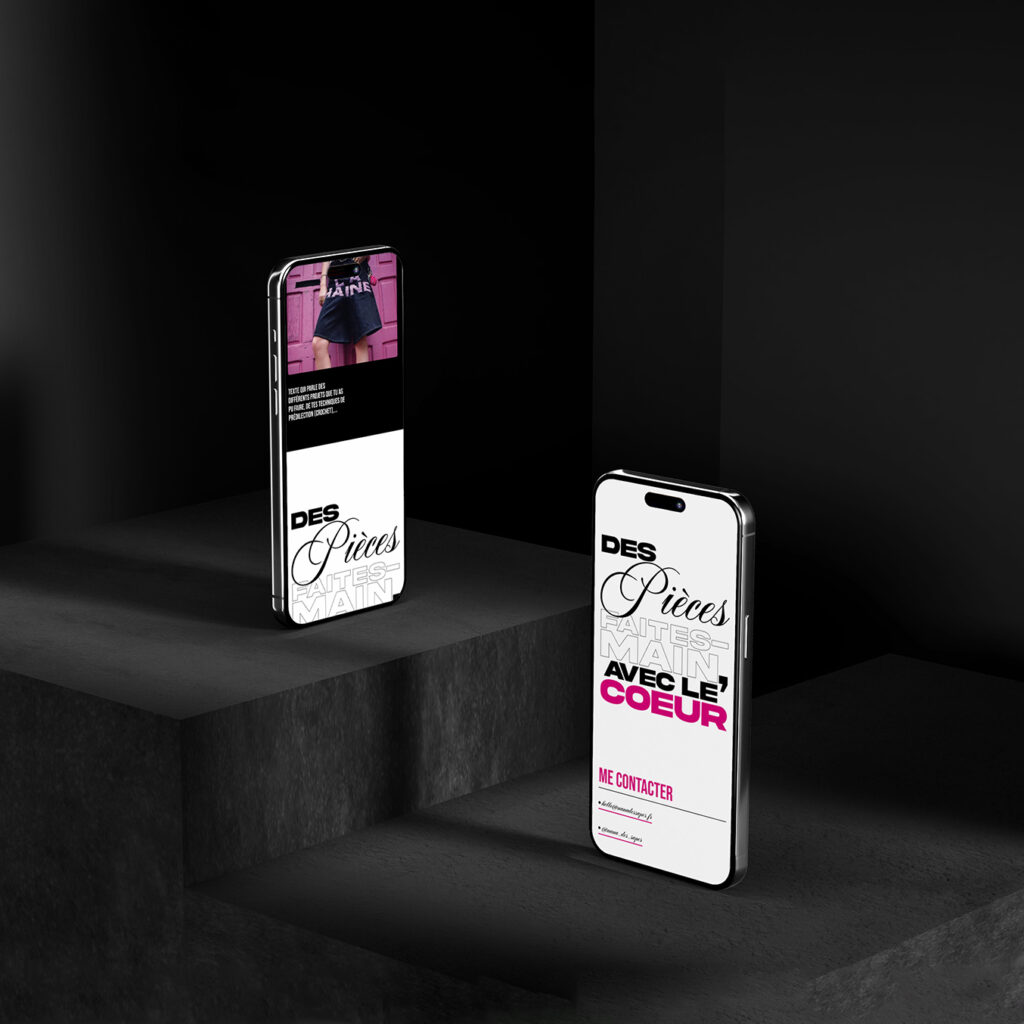 Emma avait également besoin d’un site web, pour lui offrir une visibilité et mettre en avant chacun de ses projets. La construction du site est dans la continuité de celle du logo : du contraste, des jeux typographiques, et de l’extravagance.